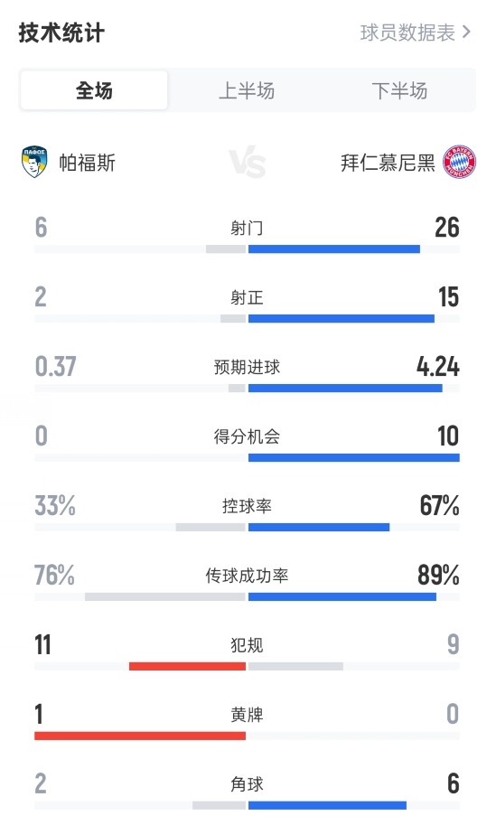 10月1日訊 歐冠聯賽階段第 2輪,帕福斯 1-5拜仁。