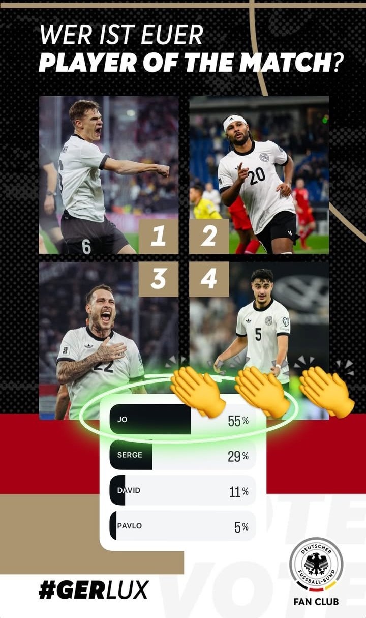 官方:基米希當選德國4-0盧森堡的隊內最佳球員