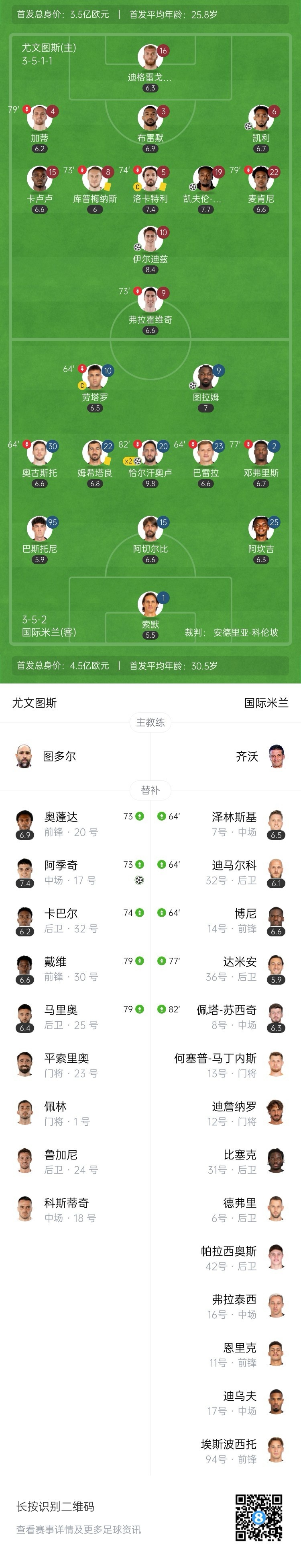 國米方面,全隊首發平均30.5歲,基本都是老將。進球的馬庫斯-圖拉姆28歲,恰爾汗奧盧31歲。