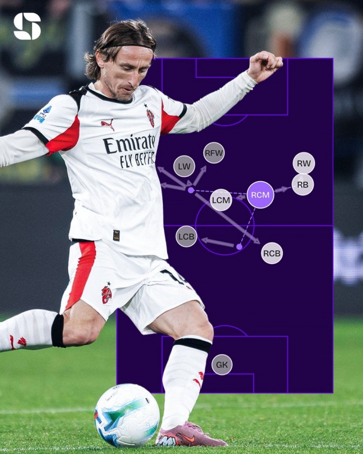 寶刀不老!40歲莫德里奇748次觸球+559次成功傳球為意甲同期最多
