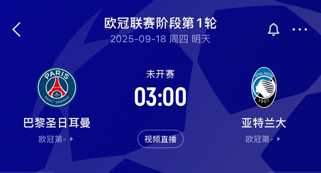 衛(wèi)冕冠軍巴黎登場,巴黎賽季開始后在法甲狀態(tài)火熱迎來四連勝。主場面對“真藍(lán)黑”亞特蘭大,能否全取3分?