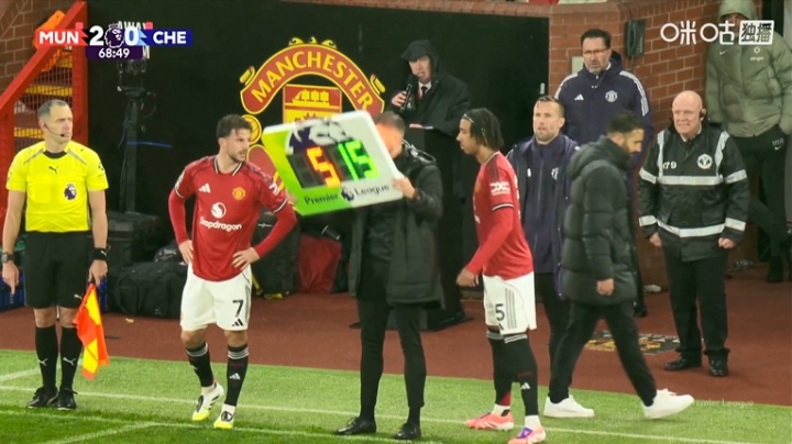 第5輪,曼聯(lián)主場迎戰(zhàn)切爾西,比賽第70分鐘,曼聯(lián)換人,馬奎爾、姆伯莫被約羅、芒特換下。