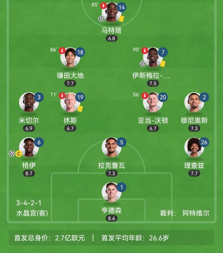 第5輪,水晶宮客場2-1西漢姆聯(lián)
