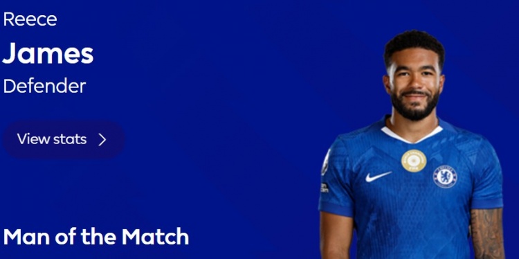 本場比賽里斯-詹姆斯首發出戰表現出色,貢獻1球1助攻,賽后他也當選