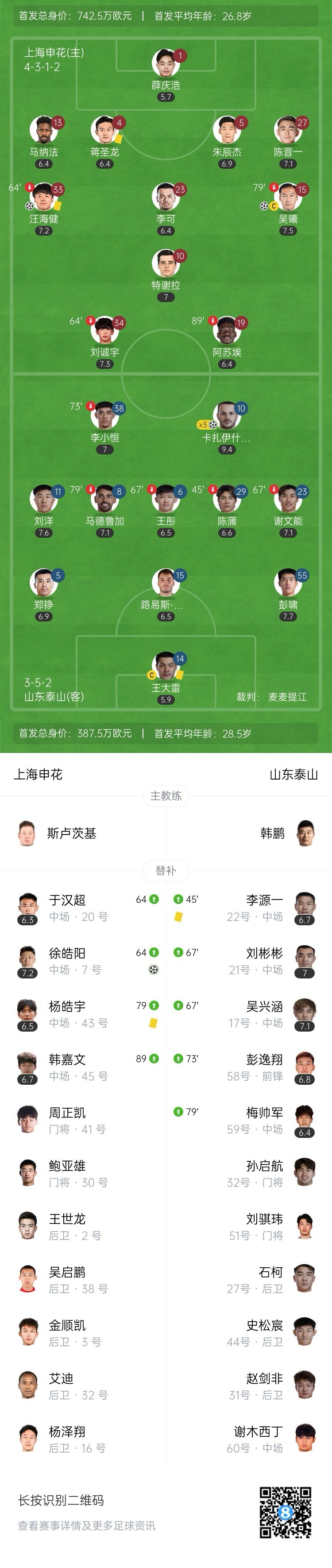 全場(chǎng)比賽結(jié)束,申花3-3戰(zhàn)平泰山。